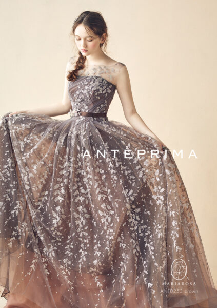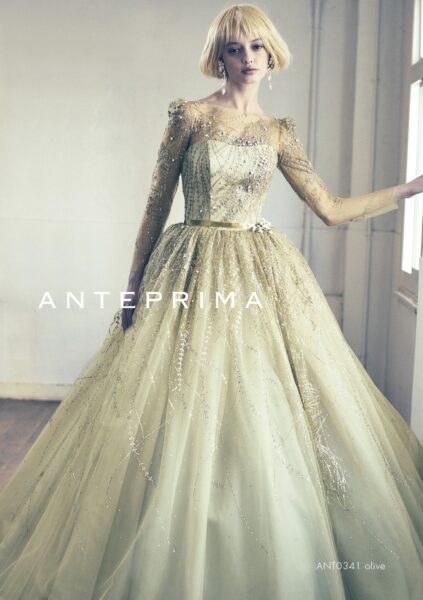 ANTEPRIMA(アンテプリマ)のカラードレスには、繊細なグリッターやビーディング装飾を使ったデザインが多く見られます。